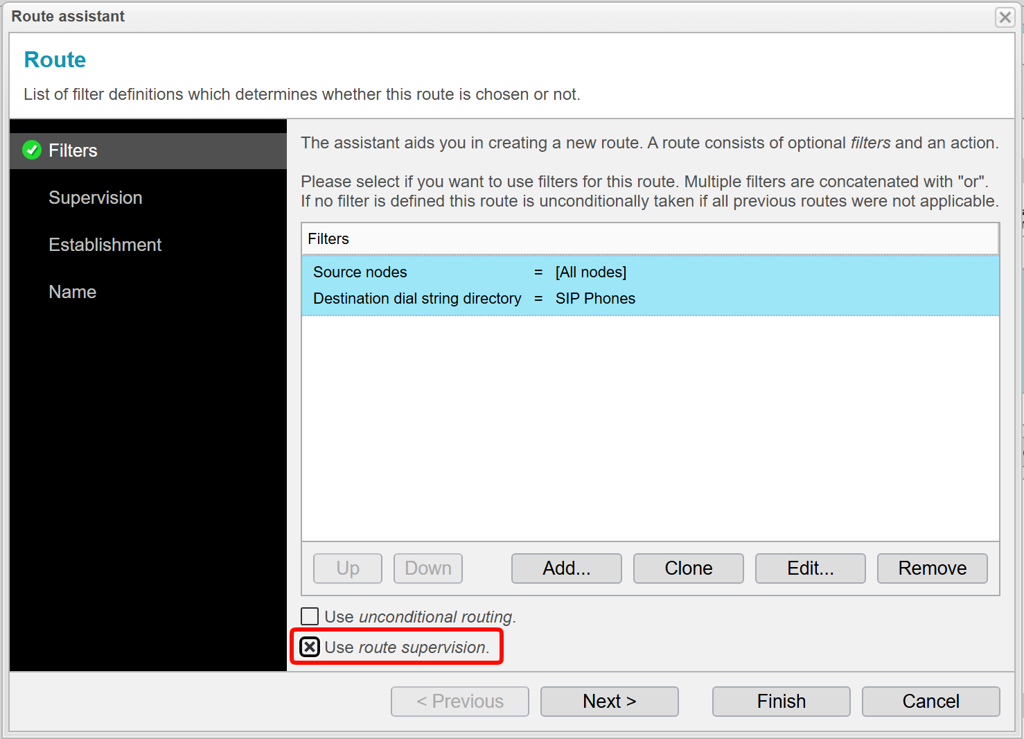 Filters: Aktiviere die Checkbox Use route supervision.
