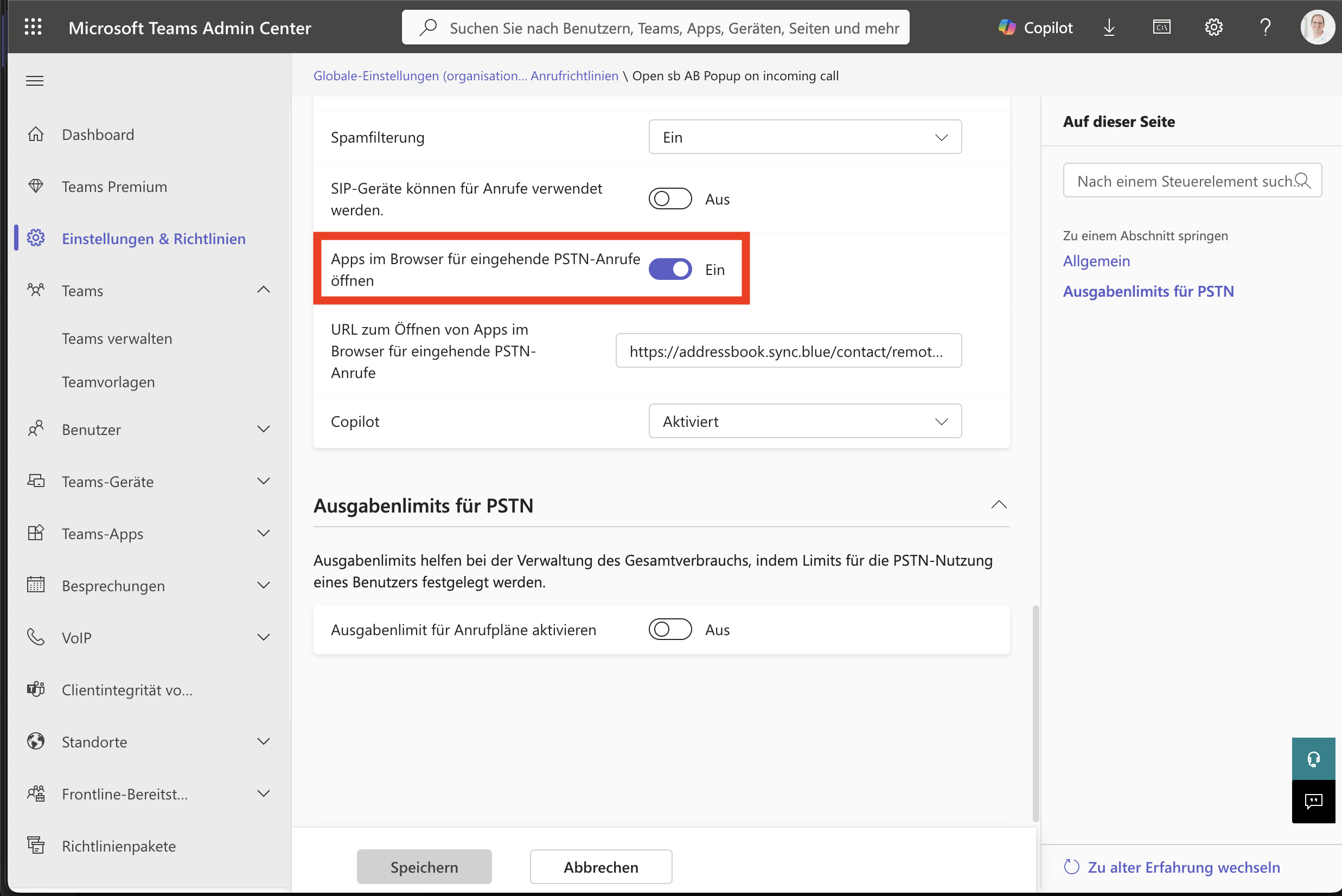 - Define the "URL to open apps in the browser for incoming PSTN calls":