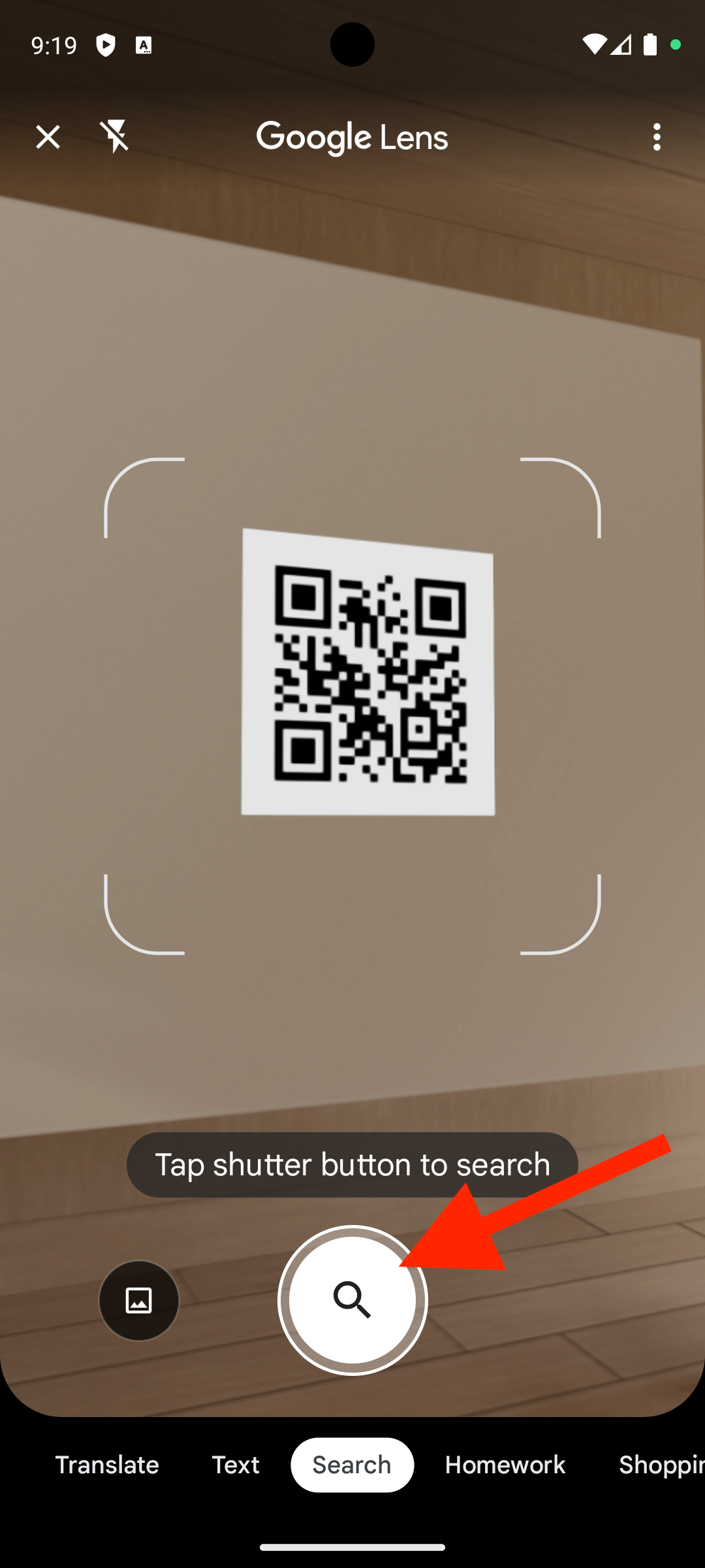 - Open Google Lens on the Android device and point the camera at the QR code.