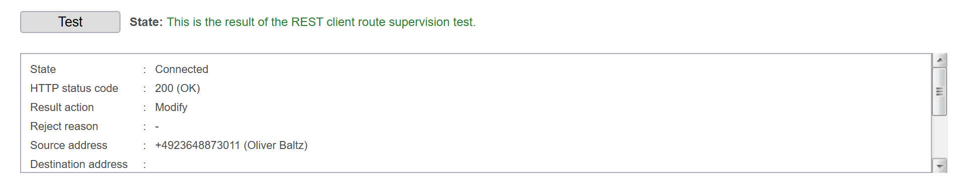 - Test: To test, you can use a phone number that is in your sync.blue® ADDRESS BOOK. The sections Automatic test and Name do not require any special settings.